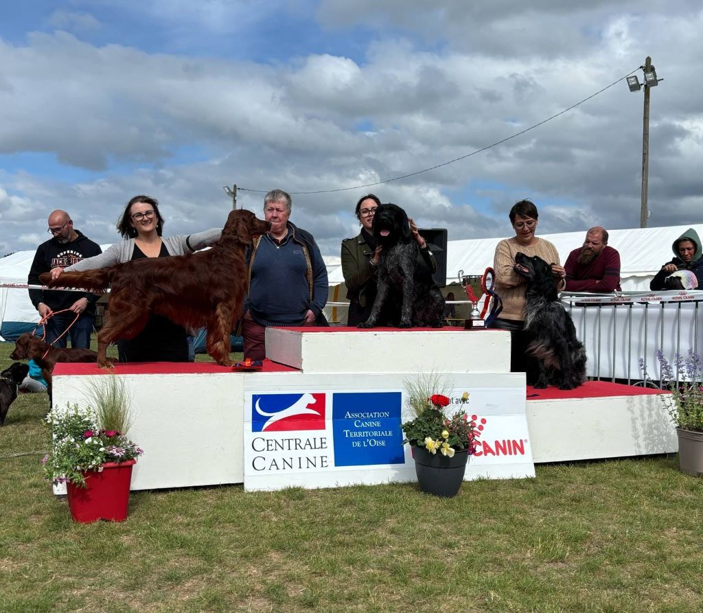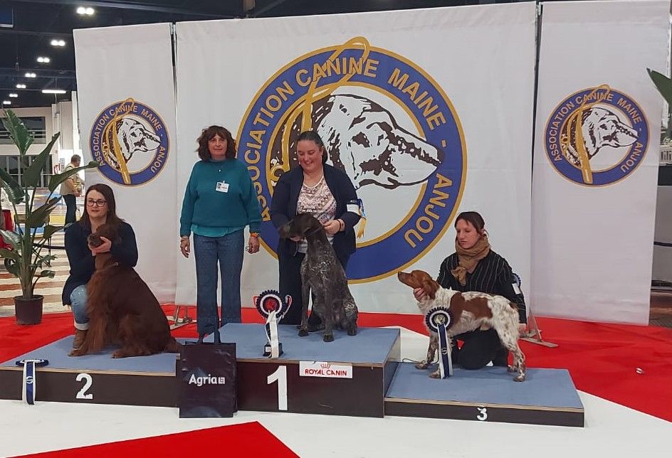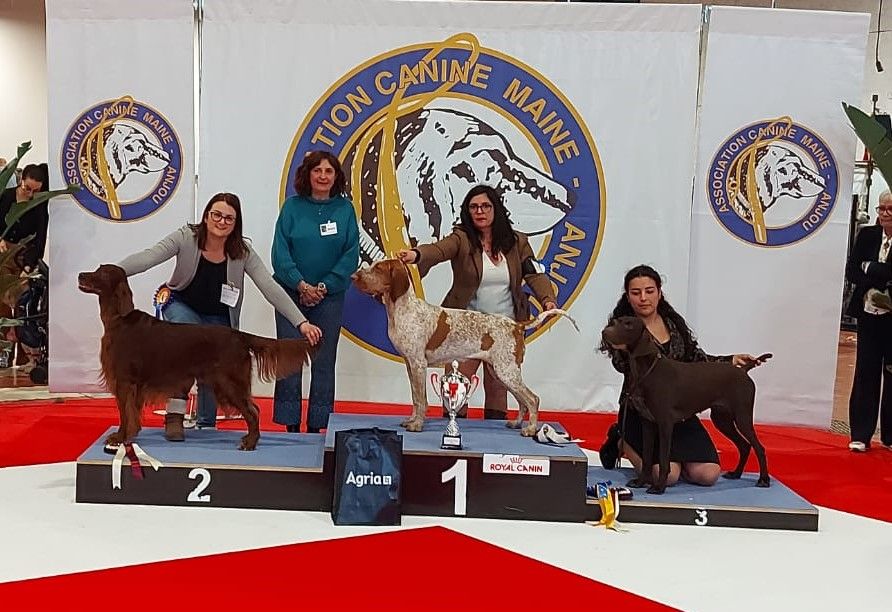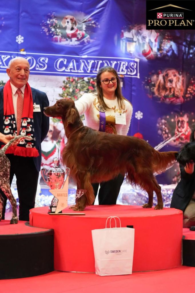 5 fois Meilleur jeune/1er exc. 3 fois Meilleur de sexe opposé en classe jeune 1 fois 3ème Meilleur Jeune de groupe 7 (BOG) 1 fois Meilleur Jeune de sa race et 1er excellent en Spécial Setter Irlandais 1 fois Meilleur Jeune de groupe 7 MEILLEUR JEUNE 1er excellent championnat de France 2017 1 fois 2ème Meilleur jeune groupe 7 2ème Meilleur de groupe 7 adultes à 15 mois