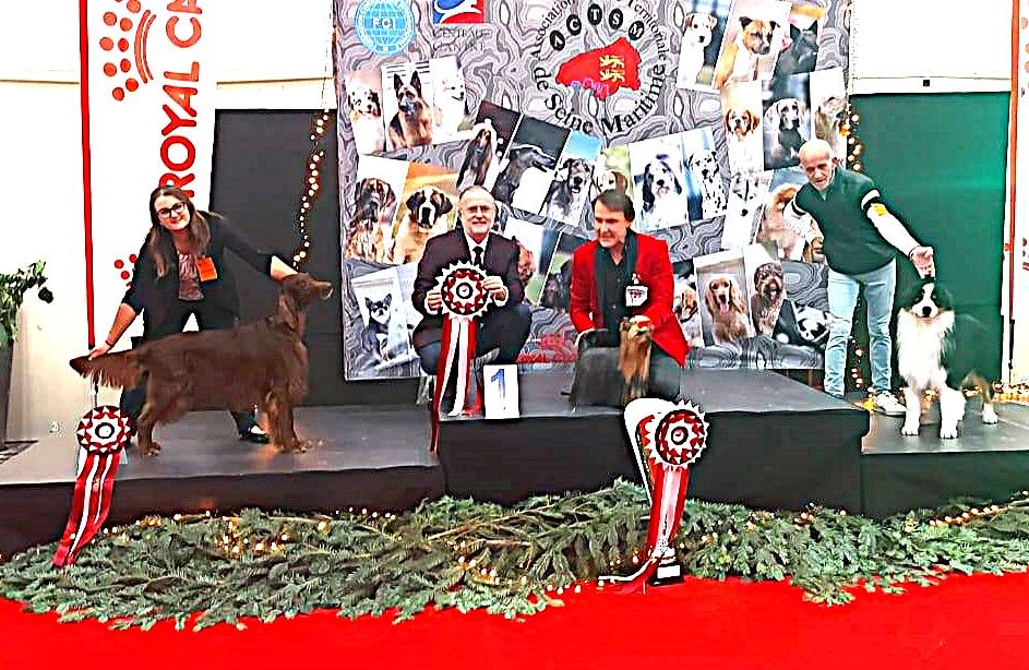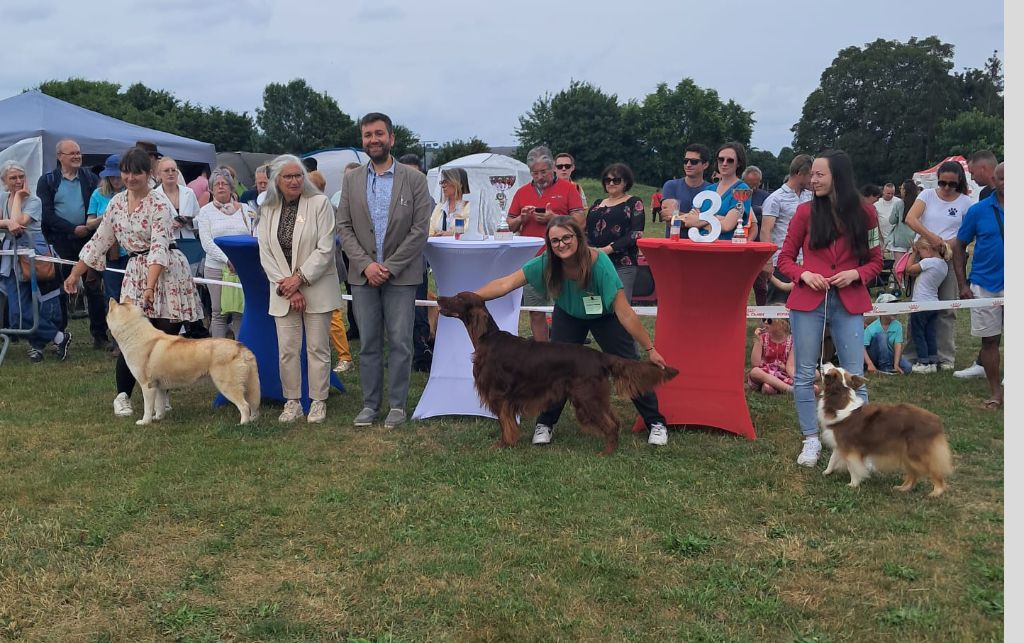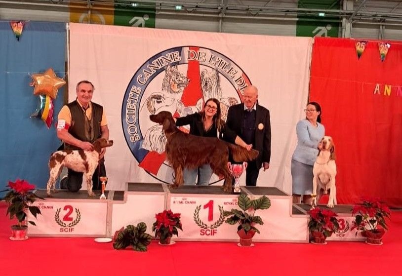 Meilleur Setter Irlandais au TOP CHIEN (vos chiens magazine) 2019 Meilleur Setter Irlandais TOP DOGS AWARDS 2020, classement DOGS REVELATION + 2ème Meilleur chien groupe 7 Meilleur Setter Irlandais TOP DOGS AWARDS 2021, classement DOGS REVELATION Meilleur Setter Irlandais au TOP CHIEN (vos chiens magazine)2021 Meilleur Setter Irlandais TOP DOGS AWARDS 2024, classement DOGS REVELATION + 3ième Meilleur chien groupe 7