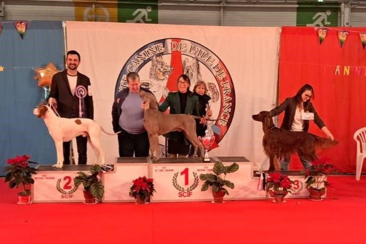 1 FOIS 1 CACL, CACIB Vétéran, BOB Vétéran et 3ème BEST IN SHOW VETERAN/42 AU LUXEMBOURG * , Vétéran Latin Winner, CACIB V /Meilleur vétéran AU CHAMPIONNAT DE FRANCE 2025 *CACIB vétéran , Meilleur Vétéran et Meilleur de Race / BOB A SPECIALE DE RACE DU CHAMPIONNAT DE FRANCE 2025