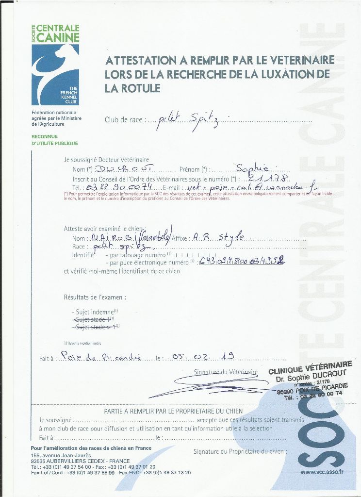 Manifestion : test luxation de rotule - Juge : Docteur Ducrout