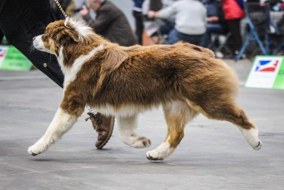 Very good typeVery good balanced dog head/proportionsVery good chest for the ageAngulations okVery good mouvement