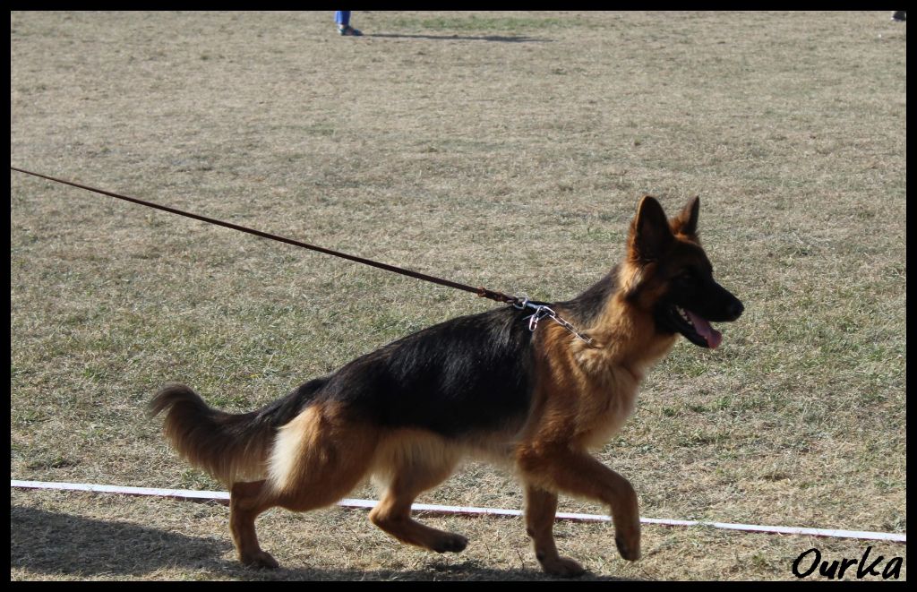 DCCBien proportionné, bonne puissance, bien typé.Oeil un peu clair, bonne pigmentation.Très bonne ligne de dessous et très bonne poitrine.Bonne angulation avant et arrière.Bonne ossature.Applombs correct pour son âge, ferme et dynamique.Bonne prise de terrain et bonne poussée.