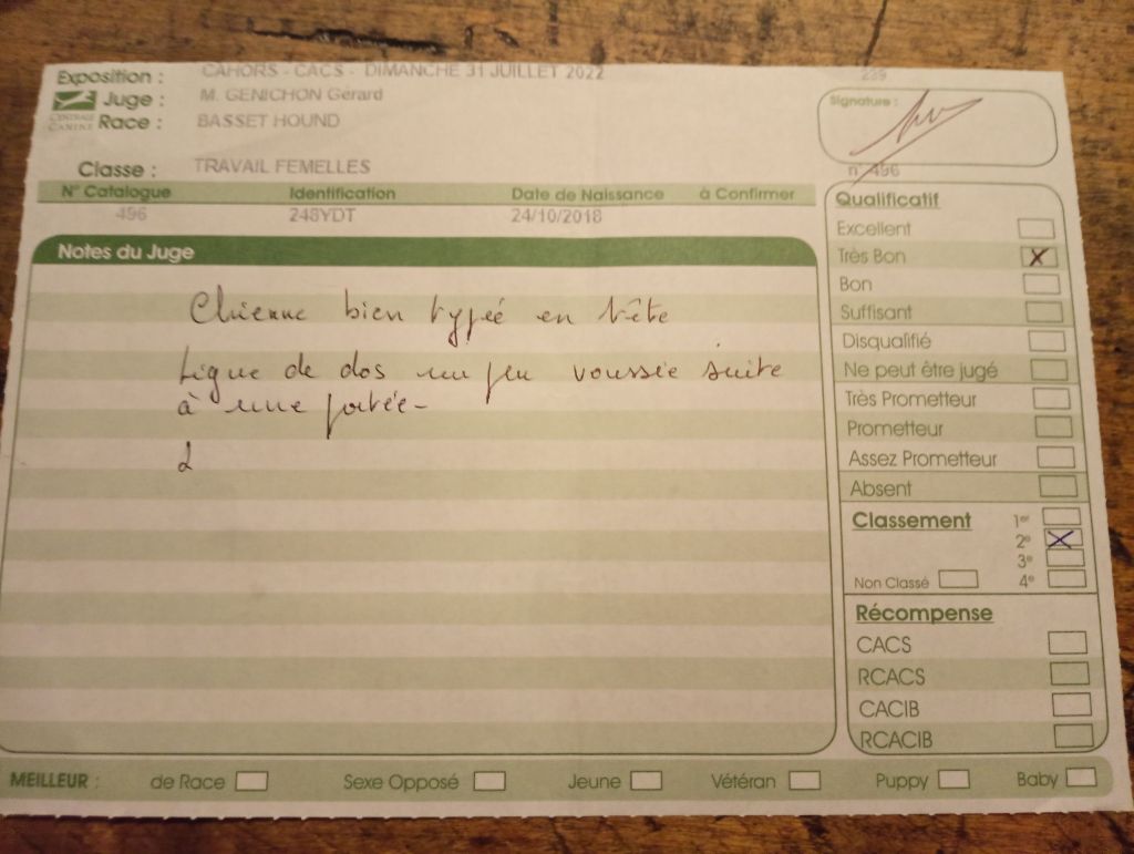 Manifestion : Brevet de Chasse - Juge : Mrs Bouvet, Bodeau, Texereau, Vidal