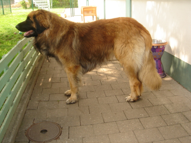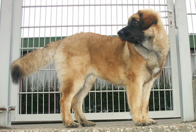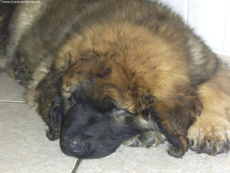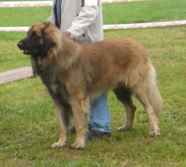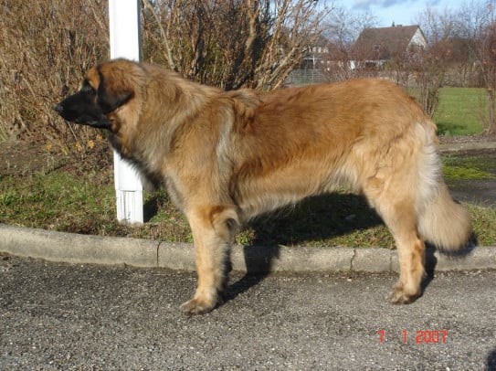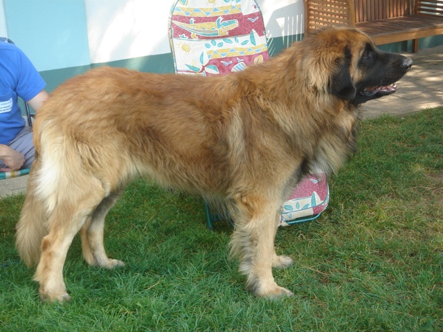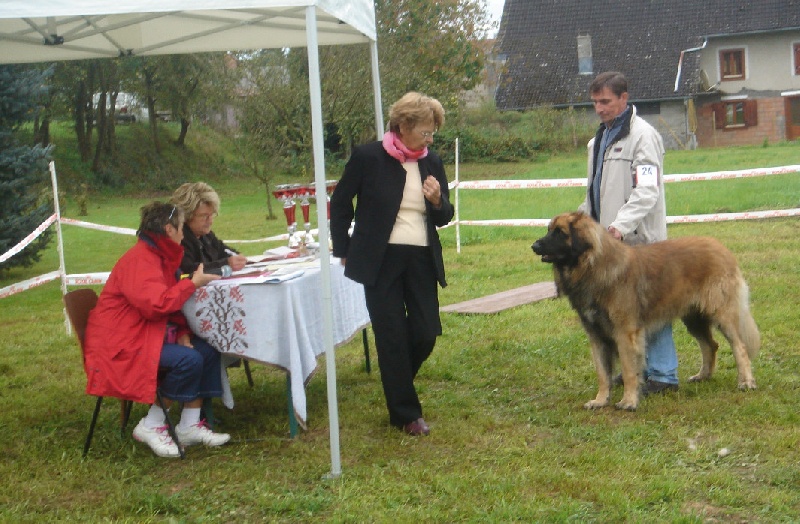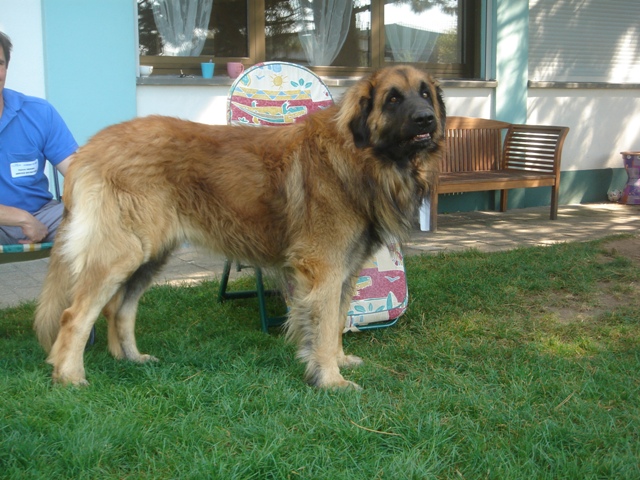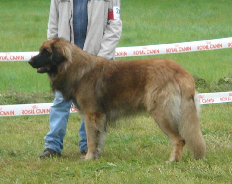 2 ans. DCC. Joli chien de B. taille avec une belle construction selon la taille.TB présentation. L'ouverture du poitrail correct et bonne profondeur de poitrine, présente déjà un développement trés correct. Trés beau dessus. Bon membres AV et aplombs AV, B. AR main et B aplombs AR. Le dos doit continuer à s'affermir. Trés bel AV. Belle couleur de robe présenté un peu en mue aujourd'hui. Tête bien typée Léo. Celle-ci doit continuer encore à se développer. Bon chanfrein, Bon masque, Belle expression, oeil noisette, pigmentation des babines correctes mais celles-ci pourraient être plus tendues. Joli chien dans son ensemble qui présente une belle contruction, devrait bien se terminer. Déplacement souple et couvre du terrain.