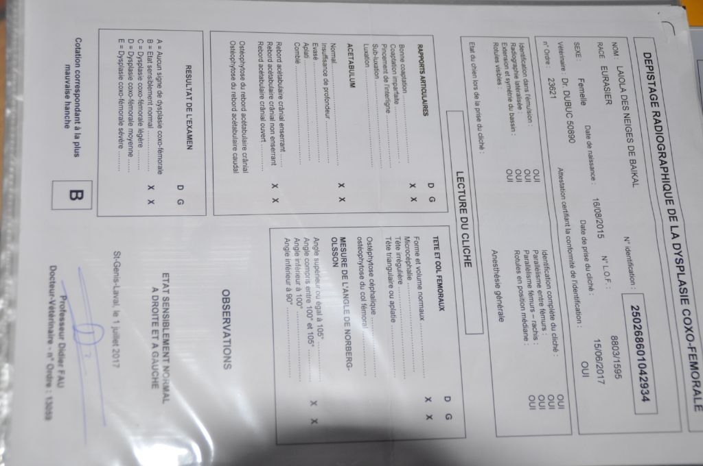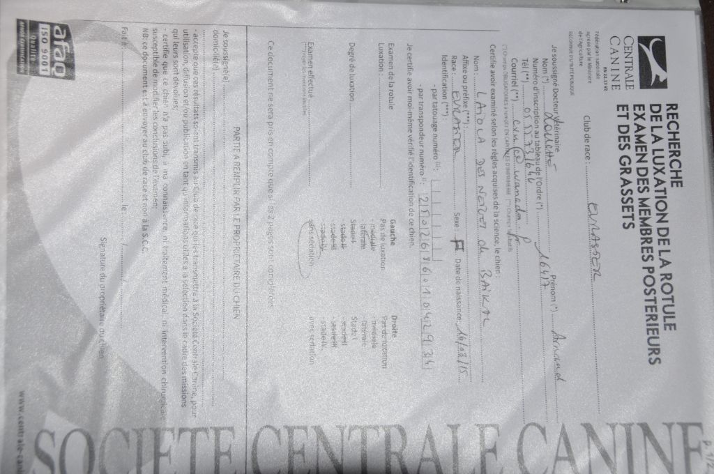 luxation de rotule - indemnedysplasie de la hanche - BDentition - DCCIdentifié ADN - oui