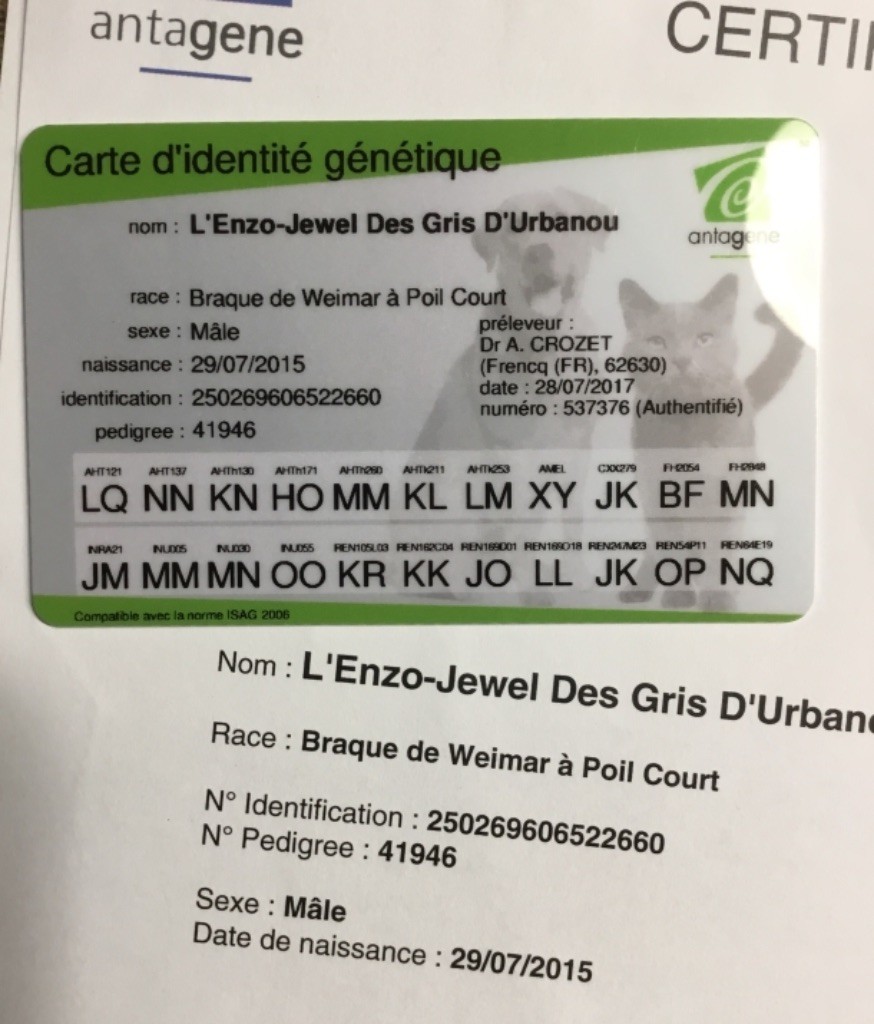Pédigree de L'enzo-jewel des Gris d'Urbanou