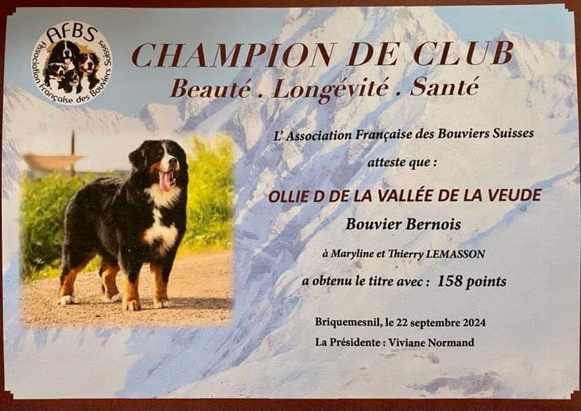 Chien Bouvier Bernois Ollie-d de la vallée de la Veude