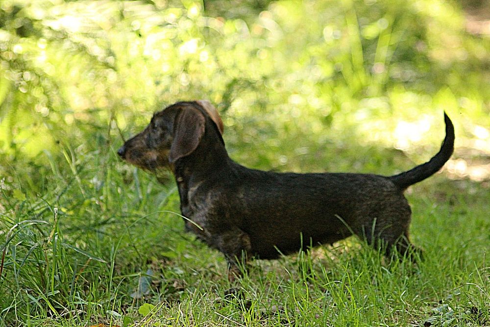 Minimoy est une teckel Kaninchen poil dur. Elle pèse 4kg500.