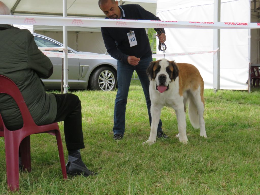 Excellentes proportionsexcellent aplombsdos légèrement voussé car le chien est en extension manque d'angulationexcellente expression en têteexcellent ?il forme et couleurBabines inférieurs trop ouverteexcellente denture et articuléExcellent déplacement avec belle poussée chien bien présenté