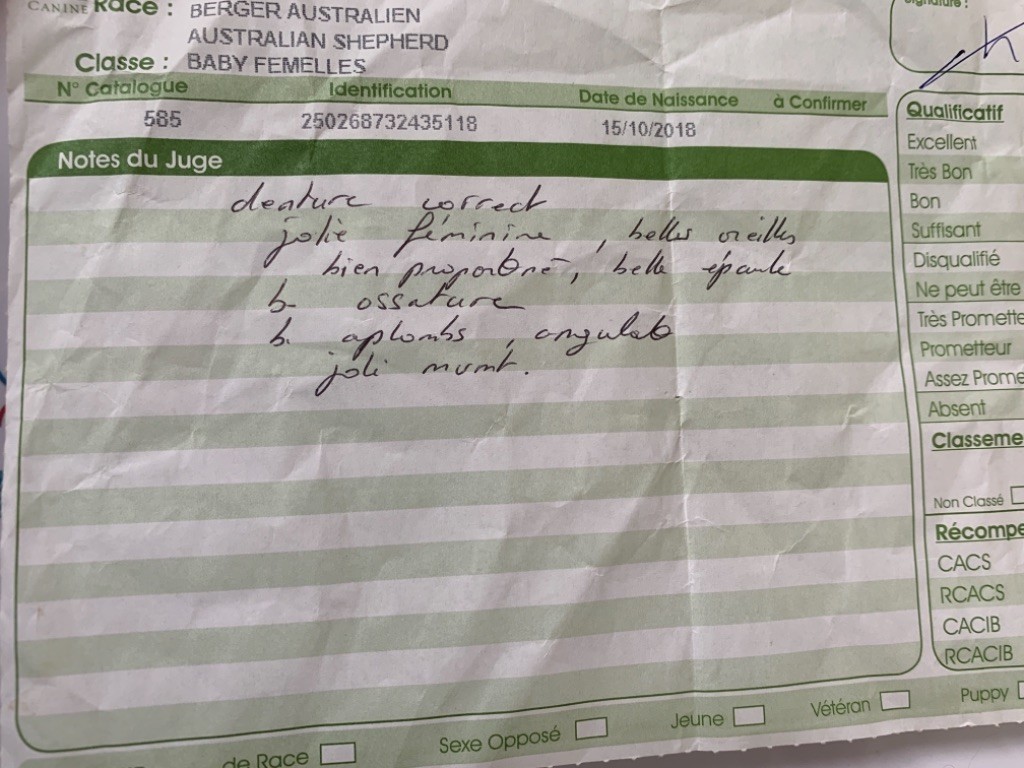 Ohana est une demi soeur d'havana. Pas du tout prévue elle a su me charmer tout de suite. Egalement bien dans sa tête, elle aime tout et tout le monde. Hyper obéissante elle a su très vite être propre, marché en laisse et à un super rappel. Comme son papa nous esperons qu'elle volera sur les rings d'expo