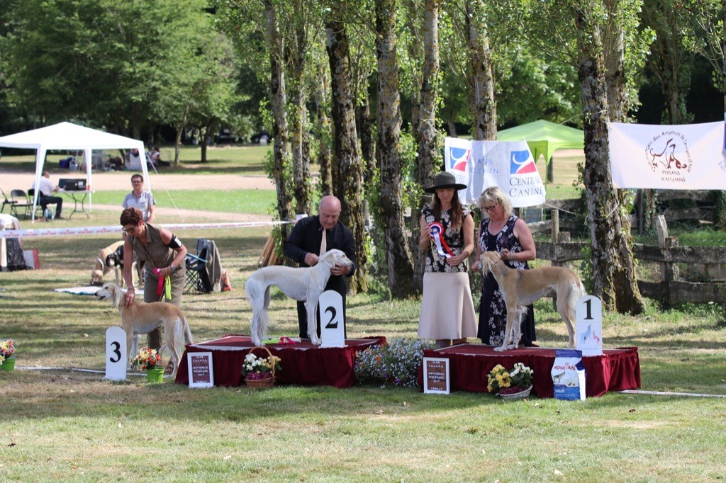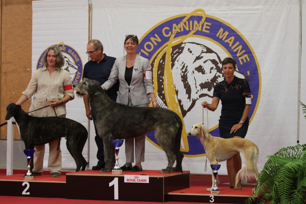 Exc formatExc caractère, jolie tête, exc oreilleBons applombs AV et bons piedsPoitrine assez descendue, belle angulations arrièreExc fouet, bonne ligne de dessusBonne angulation d'épauleBonne démarche arrière