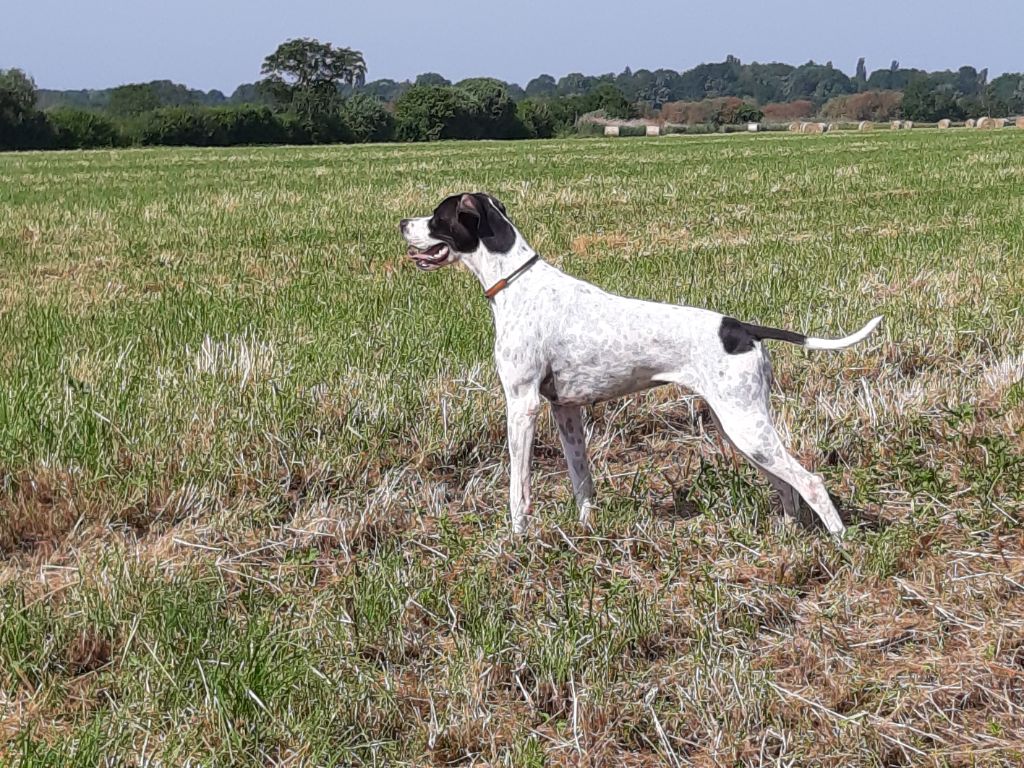 EXC forme, Tête très féminine, Bon accord crâne chanfrein, bonne couleur, Exc cou et poitrine bien descendue, Exc ossature, pieds bien serrés et épais, marche bien av et ar.