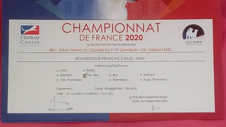 Chien Bouledogue français CH. Oam vishnu du square du p'tit quinquin