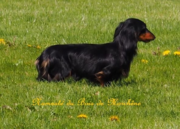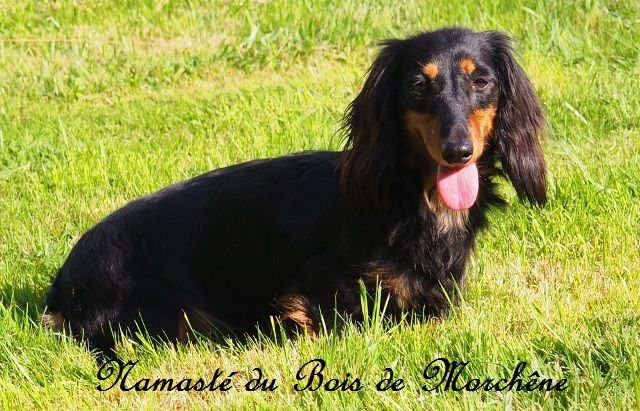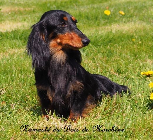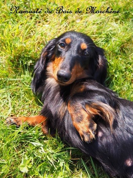 Chien Teckel poil long Namasté du bois de Morchène