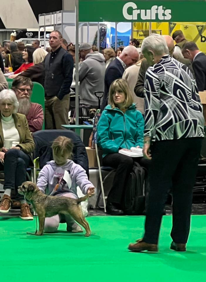 Quality class of super bitchesShow Critique:What a great honour it was to be invited to judge the Joint Border Terrier Clubs? Show in the Border Terrier?s centenary year. Waiting an extra two years did not decrease my excitement for the appointment and my anticipation was richly rewarded with a super entry both in turns of numbers and quality.My critique must start with several expressions of gratitude to those who made this appointment possible and so enjoyable.To the Committee for inviting me to judge at such a prestigious event. It was truly an honour, and the memory of the day will be one I shall treasure. Further the hospitality that myself and my family were shown at the show and the dinner following was much appreciated. We all had a great time.To the show organisers, especially Show Manger Helen Axford, whose organisation and show layout allowed everything to run smoothly even when the weather was a little less than kind to us.To my capable and efficient Stewards Christine Horner and Sharon Pickering. Having you in the ring with me was both supportive and enjoyable.Thank you to the exhibitors for giving me a lovely entry to judge. I enjoyed judging each and every dog whether in the cards or not. I had some tough decisions to make and in the stronger classes five places was insufficient for the depth of quality. A number of dogs I liked very much went cardless. I loved the line up in both my challenges and was able to find the type I wanted in all classes.I was glad to find some super coats and pelts. The changeable late April Border weather and biting wind certainly showed us the importance of these. It left us in no doubt that for a Border Terrier working the Border country in the colder winter months and at higher elevations a good coat is a must. I understand that it is not always possible to present your dogs at a show in the perfect jacket but when out of coat, personally I prefer to see a dog neatly stripped back rather than left with a few top coat hairs.I found three mouths with teeth well out of line and a couple of tails were questionable but overall the quality was excellent.