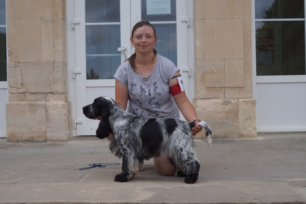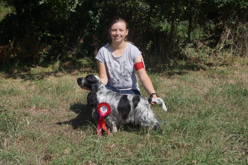 Bien construite, jolie tête, excellente expression, excellent rapport crâne chanfrein, excellente oreilles, excellente angulation, aplombs et pieds, excellent dessus soutenu, belle qualité de robe, bien dans ses allures.