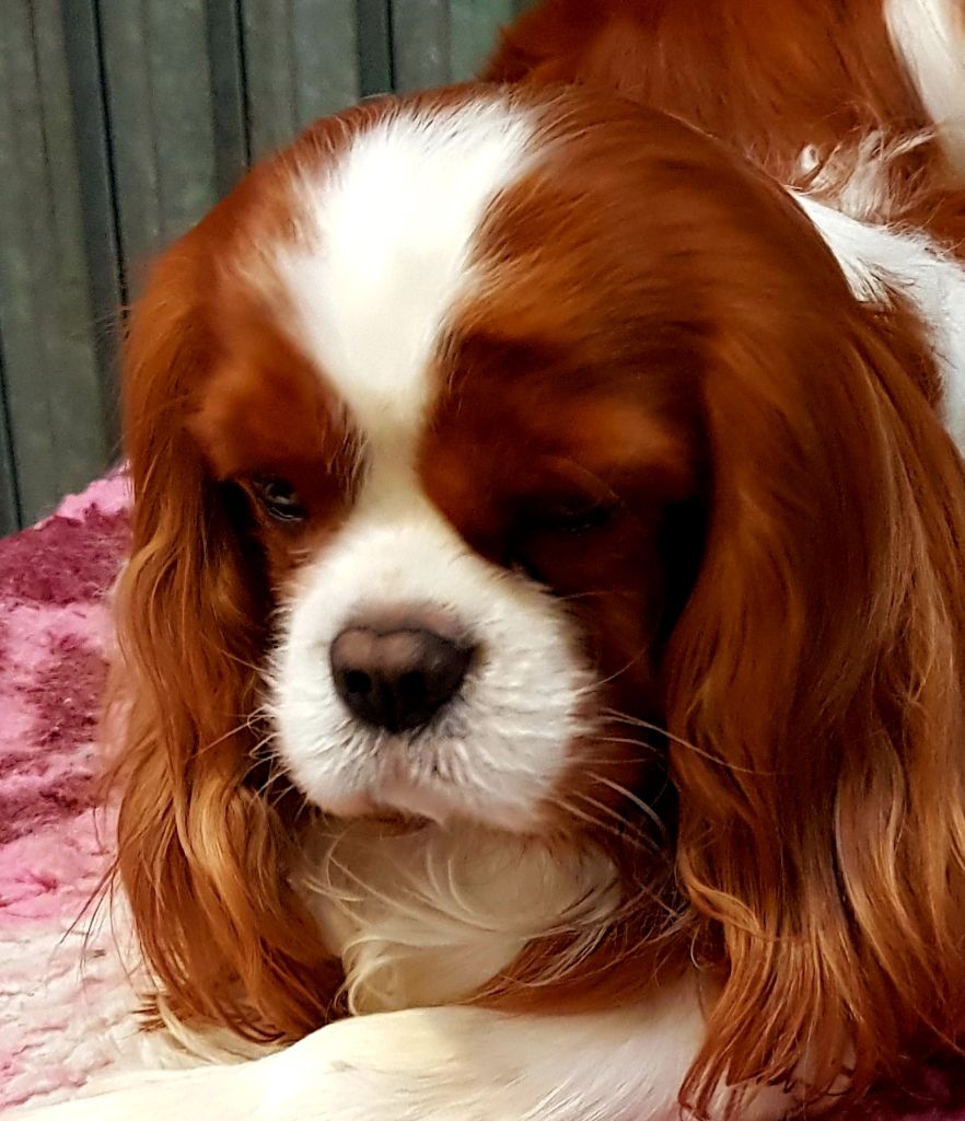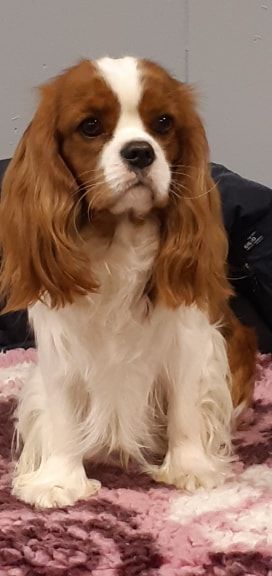 Chien Cavalier King Charles Spaniel O'soleil levant Des Hauts De La Chaume