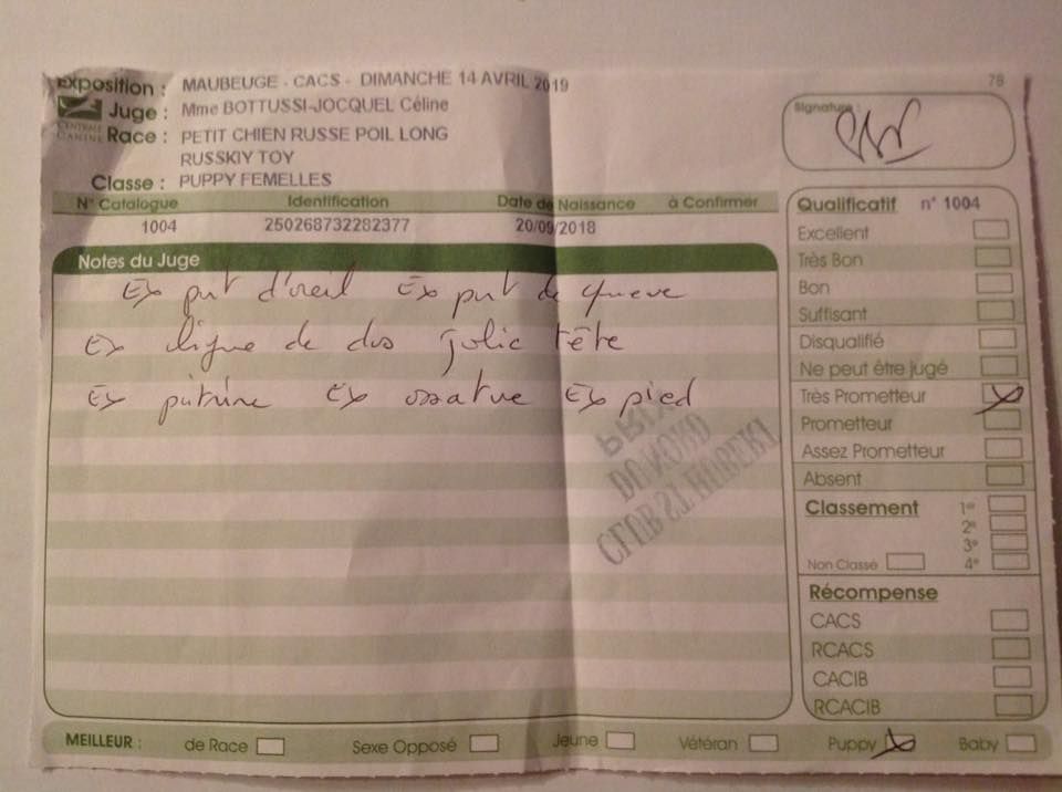 - 1 er Excellent Meilleur Jeune Meilleur de Race