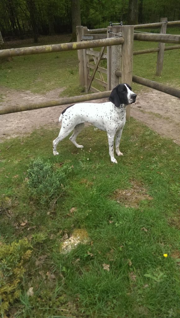 Exc chienne, superbe tête, Exc articulé, Exc épaules, Aplomb, pieds, Exc dos, poitrine bien descendue, marche comme un chien de chasse