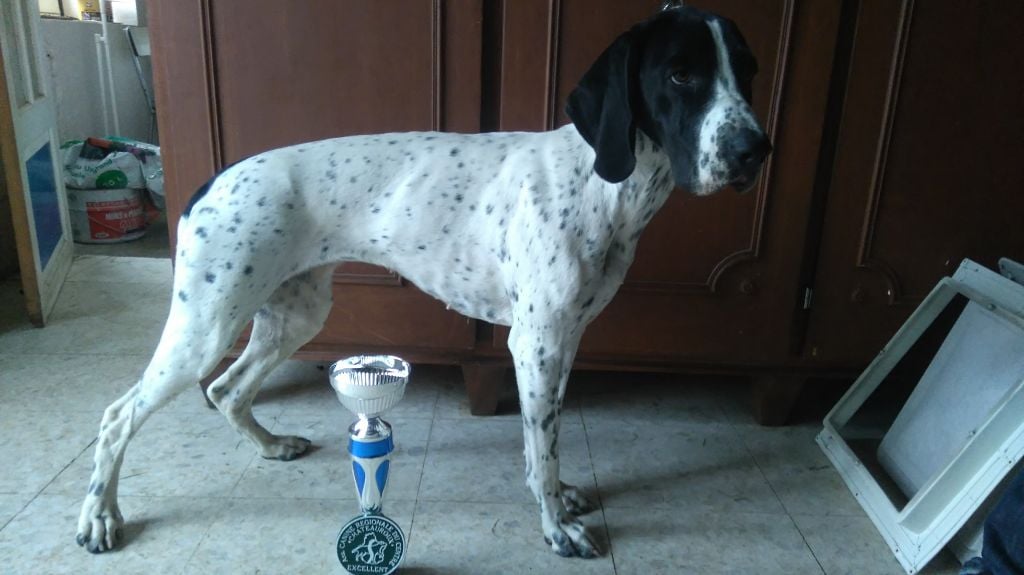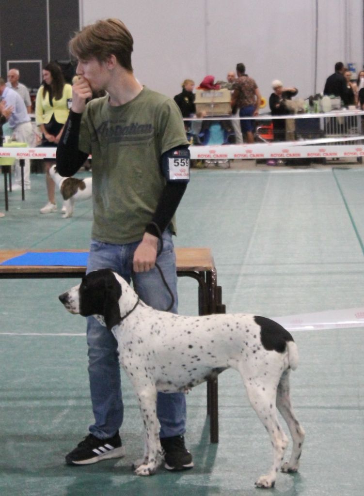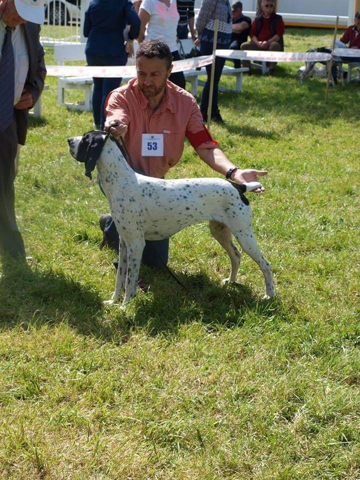 Bon format ep est un peu droite et le pied un peu souple, ang correct, b poit prof, tête ts braque avec de bonne ligne, bon dents, démarche régulière