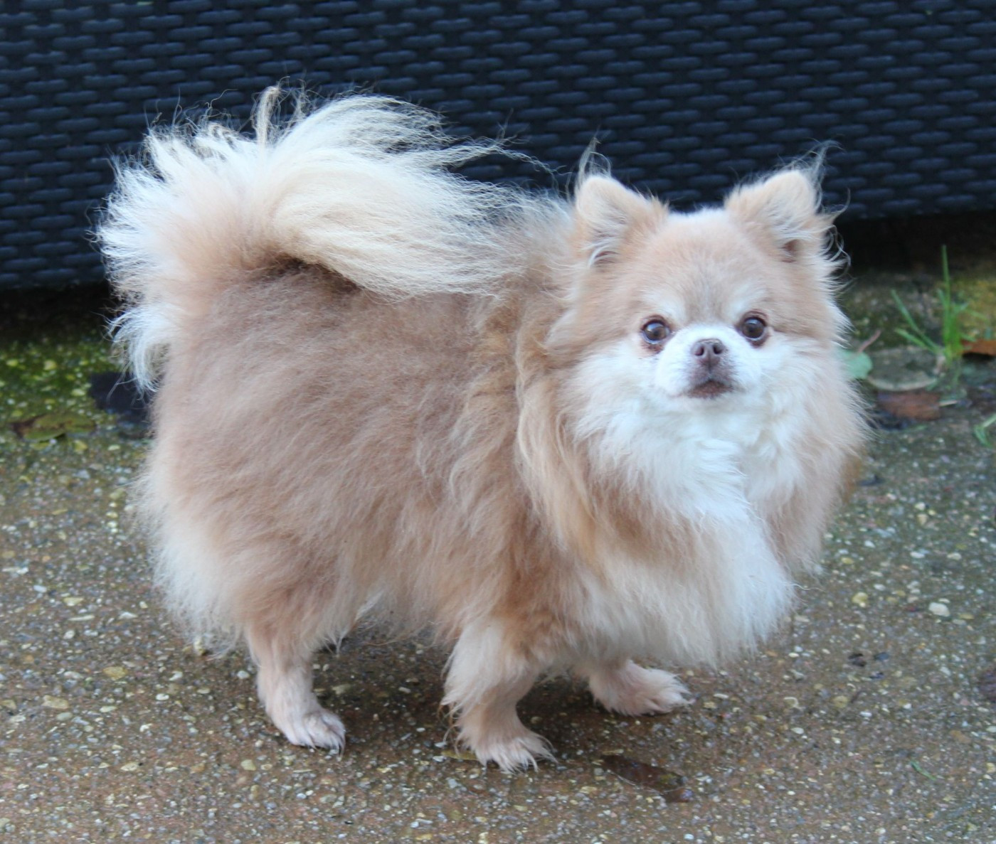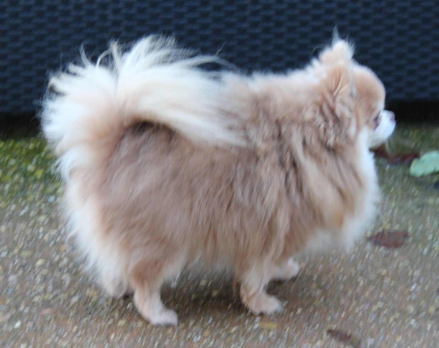 Petit sujet avec excellentes proportions, tête typée avec des oreilles bien placées, denture correcte, attache de fouet correcte, angulationscorrectes, déjà bien fourni en fourrure. démarche correcte.