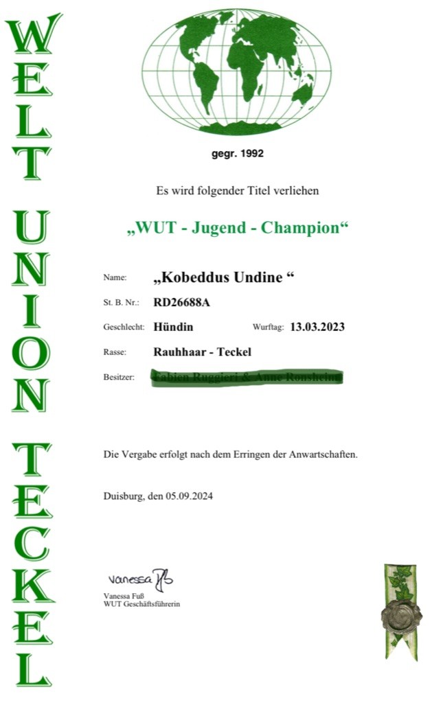 Manifestion : Kobeddus Undine; fille de Mamba - Juge : 4 juges FCI