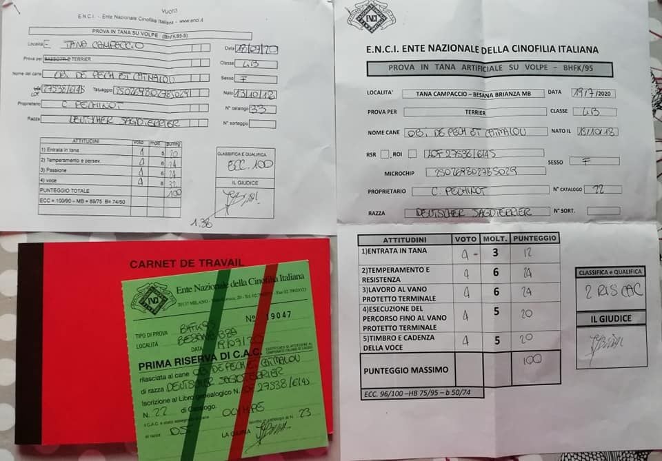 Juillet 2020 - TAN ETAR obtenu en Italie avec 2 x 1er Prix 100 points et 1 RCACT.