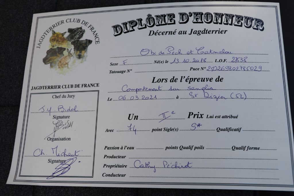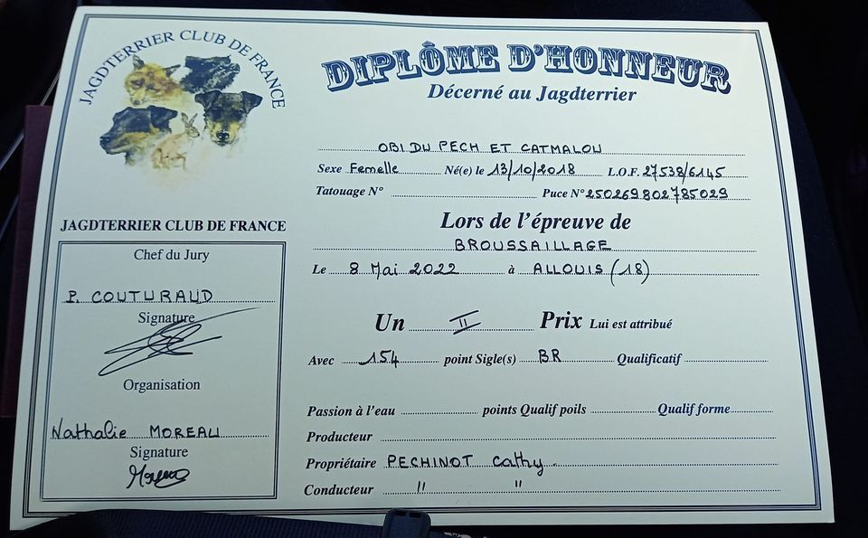 Mai 2022 - 154/200 points 2ème Prix - Epreuve de Broussaillage sur Ongulés.