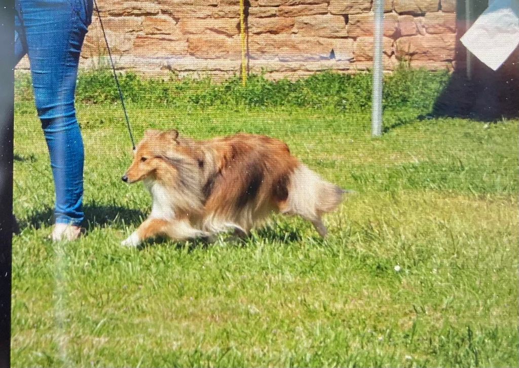 DCC. Fouet de bonne longueur - belle encolure, ligne de dos et croupe. Belle fourrure. L'oeil est un peu claire. Belles allures bergères.