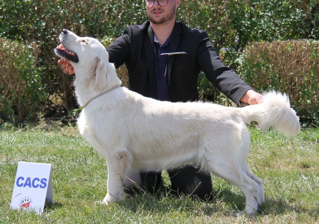 Classe : Intermediaire Femelles 1 er Excellent Meilleur de Race de Sexe OpposéC.A.C.S Notes du juge : Jolie chienne harmonieuse, tête bien conformée, encolure bien dégagée, angulations correctes, bien construite, cage thoracique bien développée, se déplace avec amplitude.