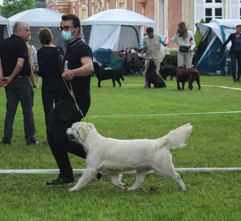DCC, Joli modèle bien établitTB tête dans son ensemble avec TB oreilles bien implantées, oeil bien coloré. B sortie d'encolureExc ligne de dos et poitrineJoli fouet avec TB panache TB angulationB allures, TB poil