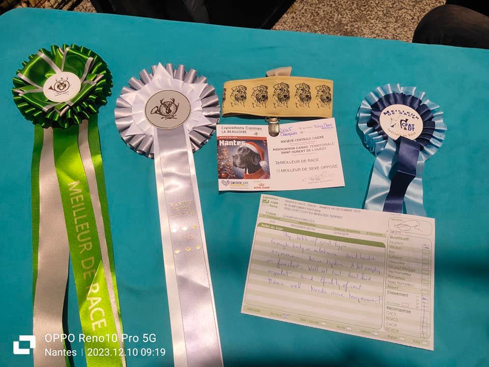 Merci à Mr Dupas pour ces commentaires MAGNIFIQUES sur ma fifille, je cite : "Une petite merveille dans le ring, qui marche divinement bien, avec un poil typique, tout est dans la demie mesure, rien n'est excessif"