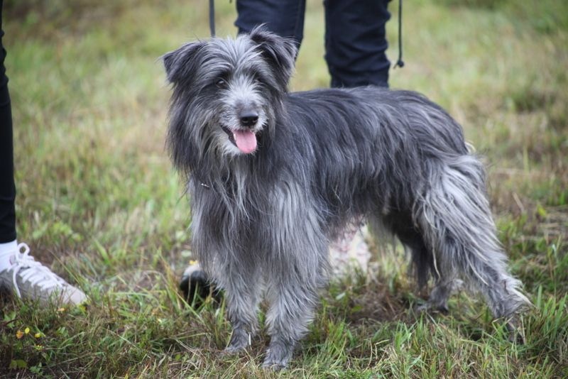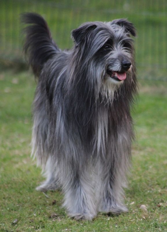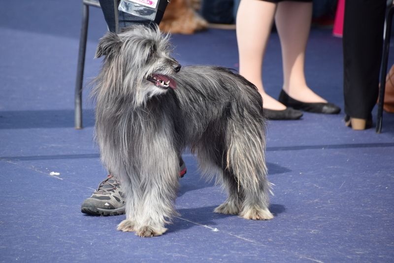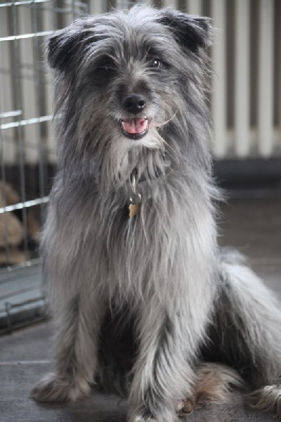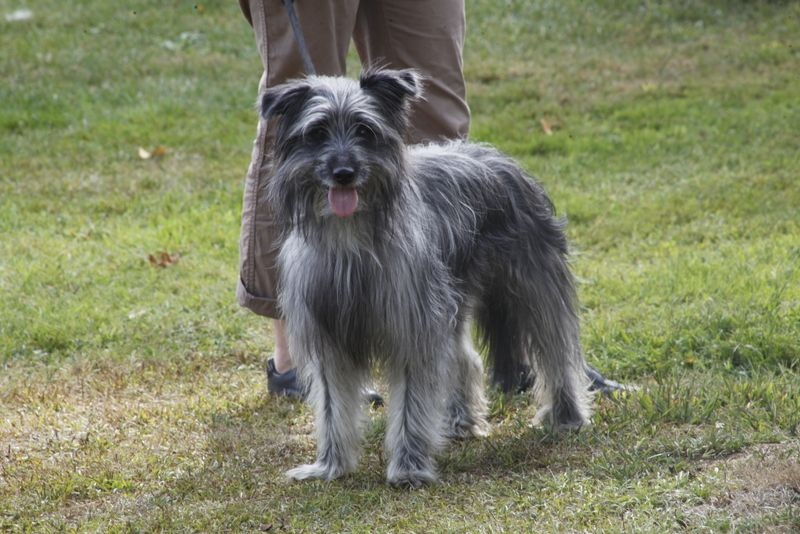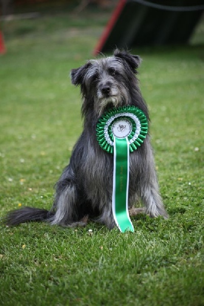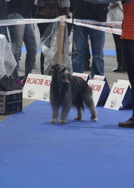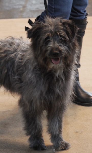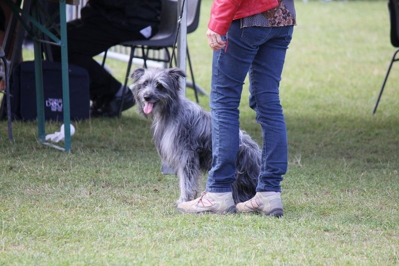 Petit chien gris.TB TEXTURE DE POIL.TB PROPORTION.EXC ANGULATION.TETE EXPRESSIVE AVEC EXC ORIELLES MAIS CRANE UN PEUT ETROIT. BON CARACTERE. SERRE AR.EXC PORT DE FOUET.TB ALLURES DE PROFIL QUE J'AIMERAI PLUS COULEES