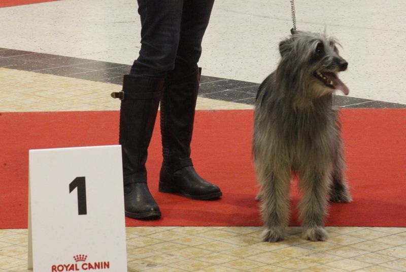 1 ANS DCC.TB TÉTE.EXC ?IL ET COULEUR.EXC PIGMENTATION BABINE FERME.EXC ENCOLURE.TB LIGNE DE DOS.B POITRINE.OSS SÈCHE.TB ANGULATIONS.FOURRURE CORRECTE.SERRES LÉGÈREMENT LES COUDES DANS SON ARRIÈRES.EXC ALLURES EN ALLER RETOUR ET PROFIL.EXC PORT DE QUEUE ET LONGUEUR DE FOUETS