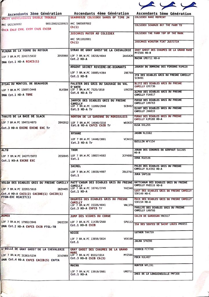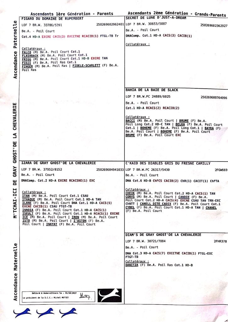 Pédigree de M'tchai-ici De gray ghost' de la chevalerie