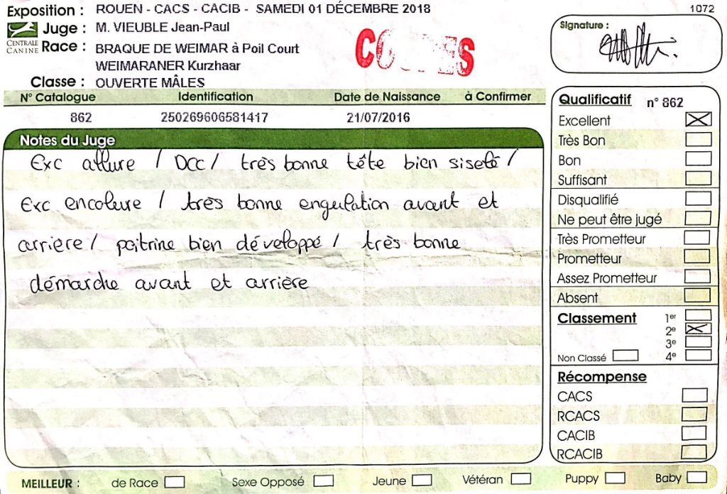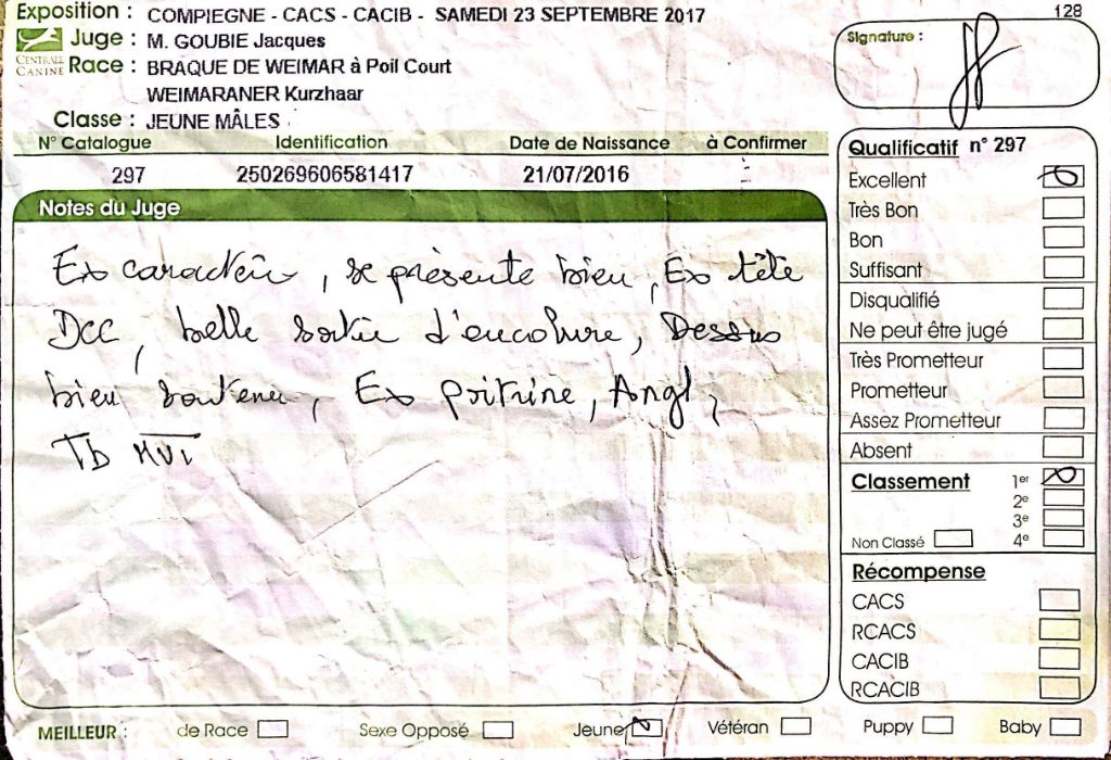 Confirmation et Meilleur jeune en 2017 à Compiègne (excellent).