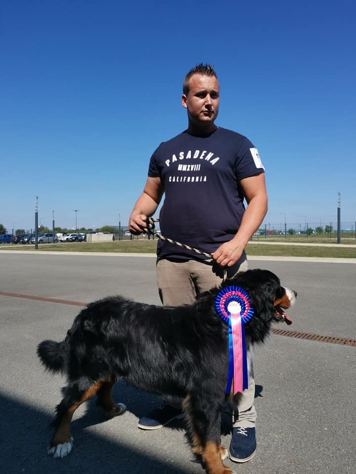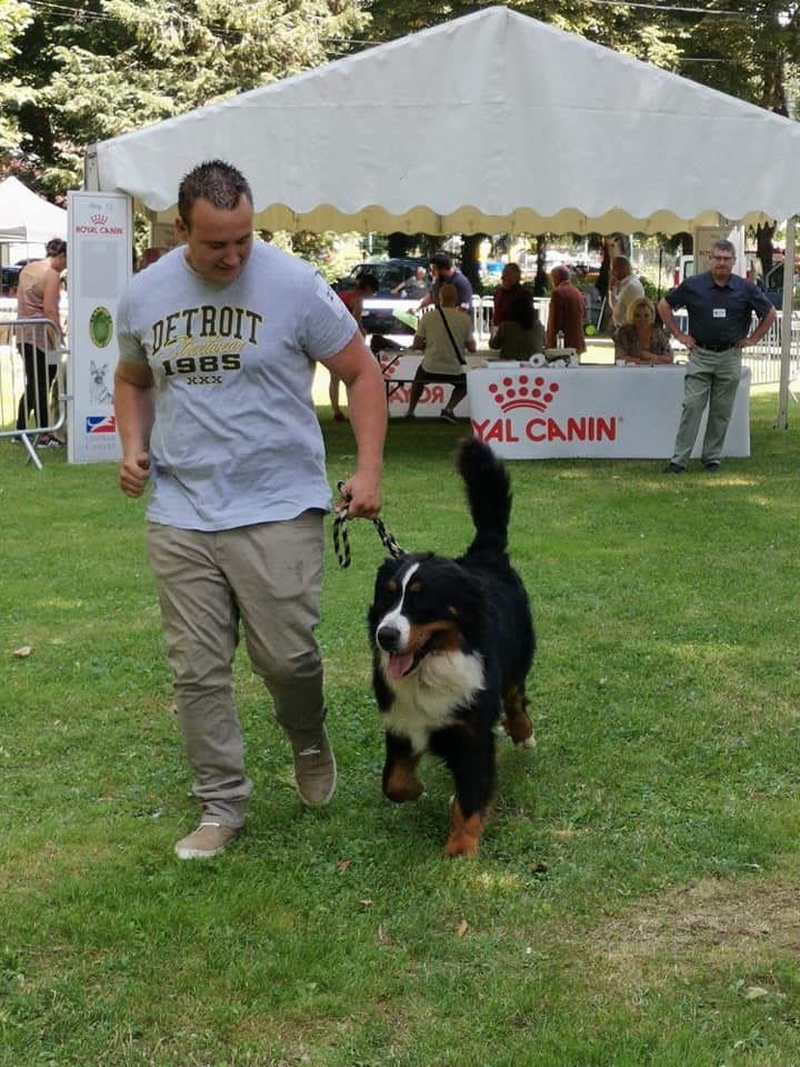 Joli chien dans le type, joli tête masculine, yeux couleur correct, paupières corrects, très bon museau, excellente denture et articulé, excellente ligne de dessus, excellente angulation avant et correct à l'arrière