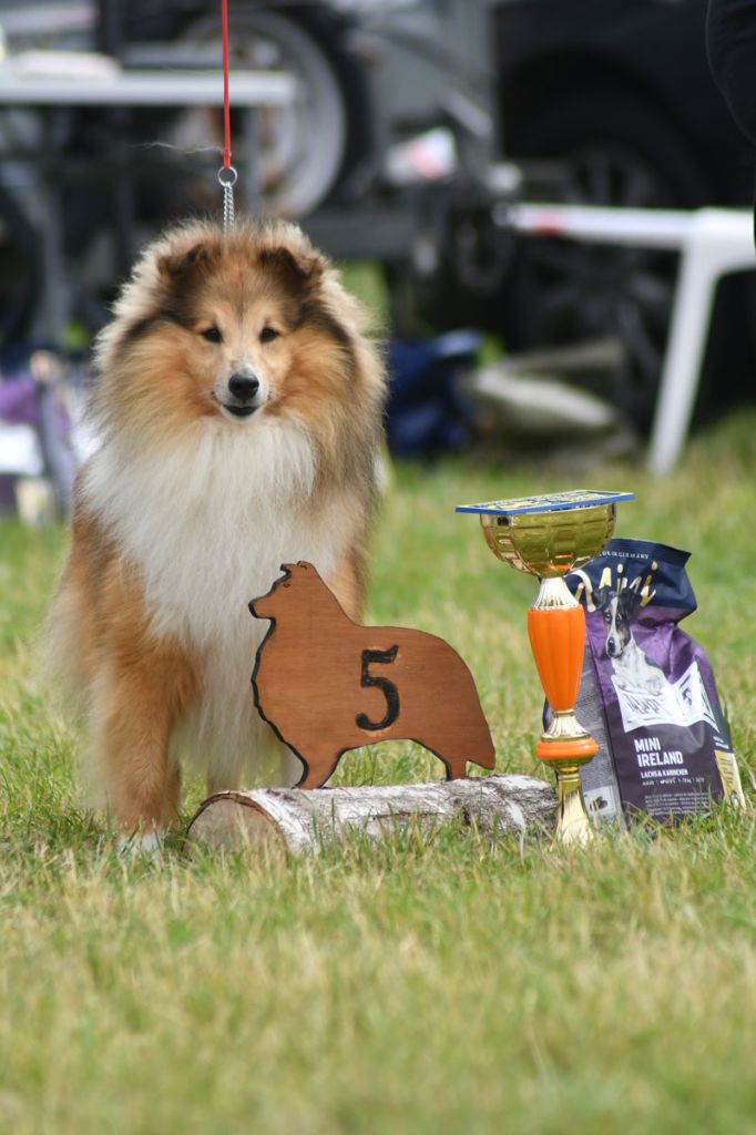 Classe Intermédiaire. Spéciale de race. Joli modèle. Typé. Excellent chanfrein, ?il, crane, et oreilles. Excellent dessus, Fouet de bonne longueur. Excellente ossature. L'épaule pourrait être plus angulée. Excellent jarret. Aller retour correct. Mouvement régulier. Bonne prise de terrain. Fouet bien géré. Excellente robe et fourrure.