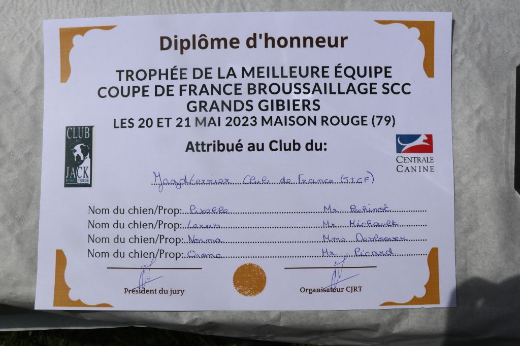 - Médaille de Bronze 2023 de la SCC à la Coupe de France de Broussaillage sur Grand Gibier