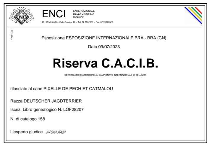 Juillet 2023- IDS Bra (Italie) - 1ère Excellent RCACIB.