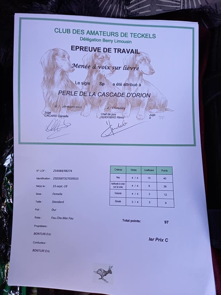 Epreuve de menée à voix sur lièvre naturel à Chouday (36) le 28.03.2021 : 1er prix C - 97 pts