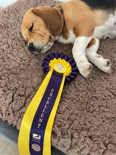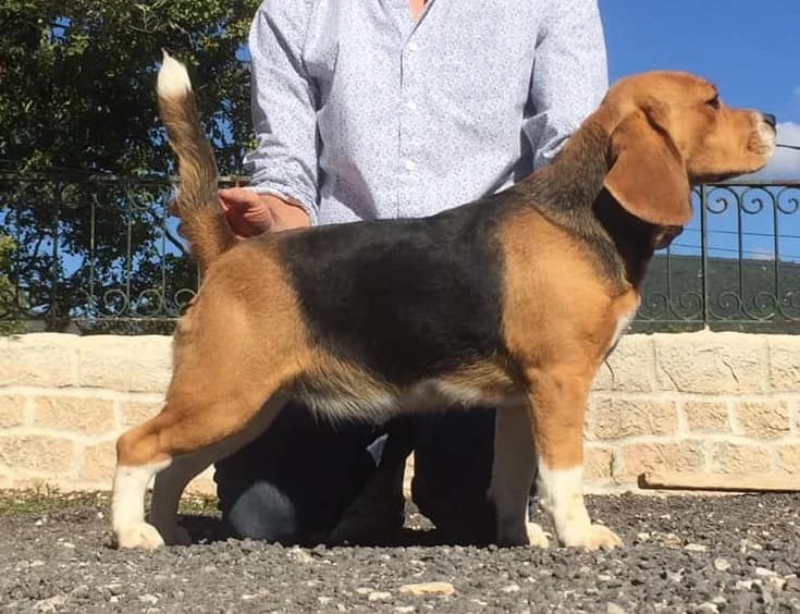 37cmdentition conforme , tête un peu massive , oeuil foncé , excellente pigmentation , excellente oreille , excellente ossature et pieds , bonne ligne de dos , corps bien proportionné , bonne attache de fouet , excellent mouvement ,