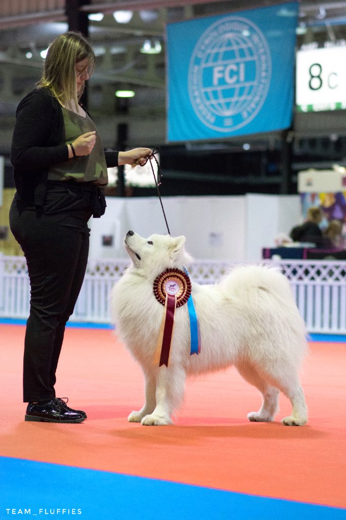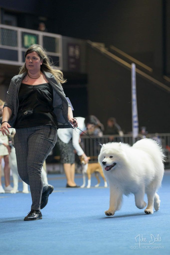 Excellent format et silhouette, sujet bien représentatif de la race, excellente tête, excellent mouvement, excellente présentation, excellent caractère très bonne construction.