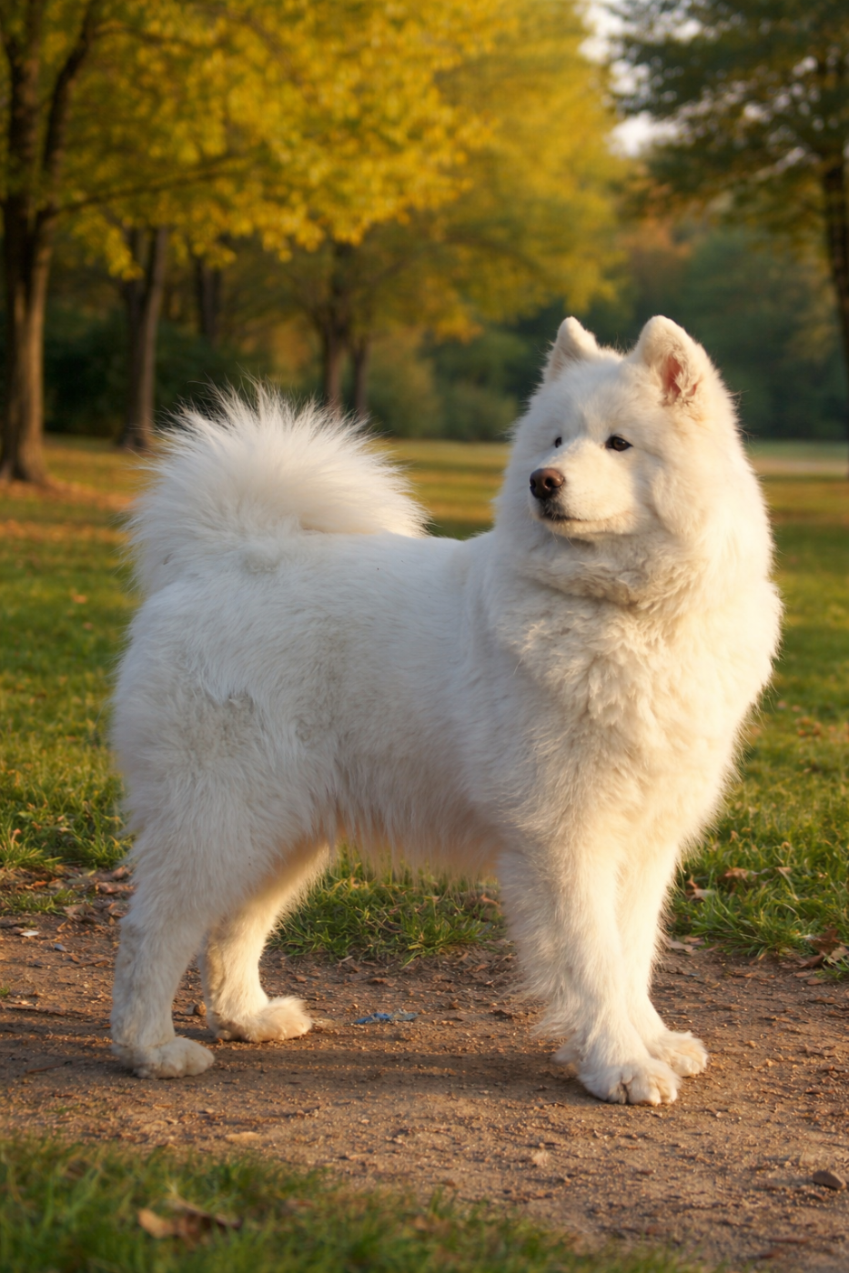 Chien Samoyède Perce neige pixie Tweed Lenissei