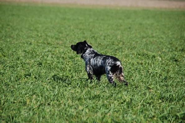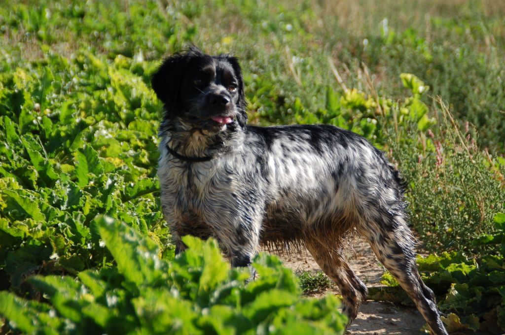 Sur le terrain, chienne pétillante, très chasseuse qui s'appuie constamment sur son vent et dotée de grosses qualités olfactives, Arrêt Naturel très ferme. Dressage facile.Chienne très équilibrée