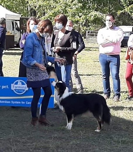 Tricolore, très jolie tête, excellente silhouette, très bonne présentation, belle chienne dans l'ensemble...