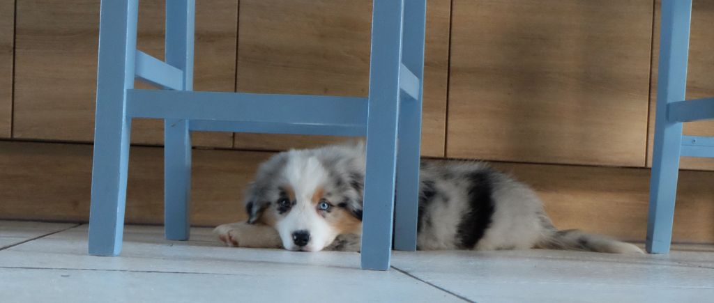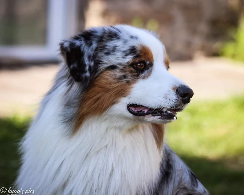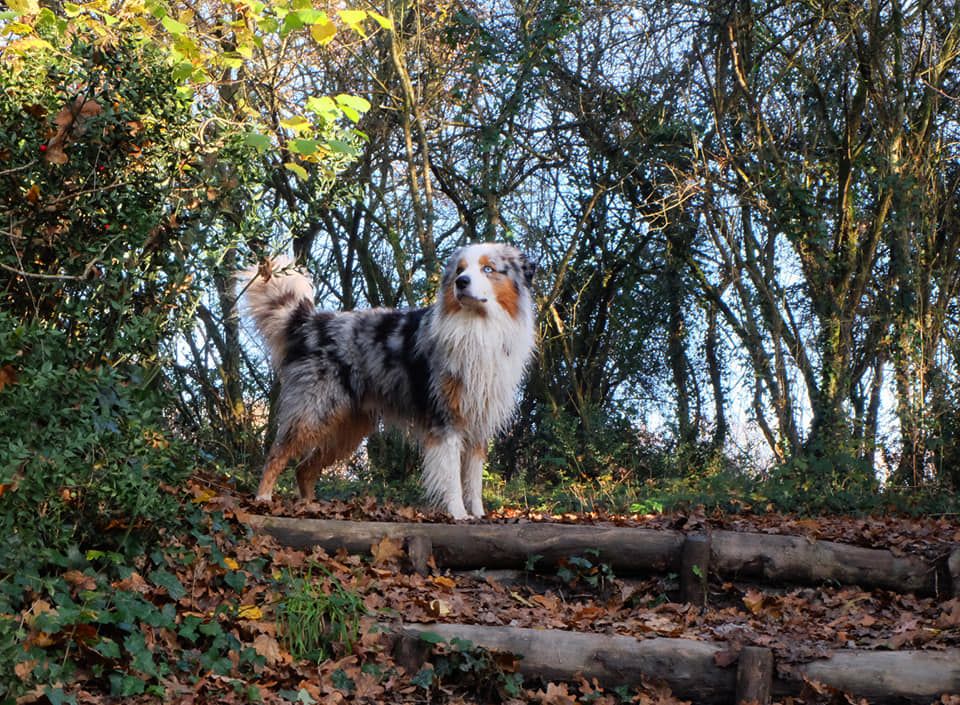 Chien très facile et sociable avec tous chiens. Vit avec enfants, chevaux chèvres et poules. Randonne avec les chevaux. Très dynamique et sportif.