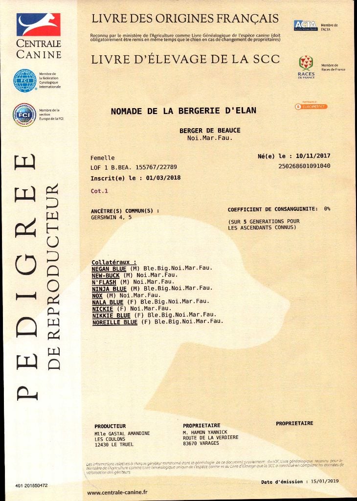 Chien Berger de Beauce Nomade De la Bergerie d'Elan