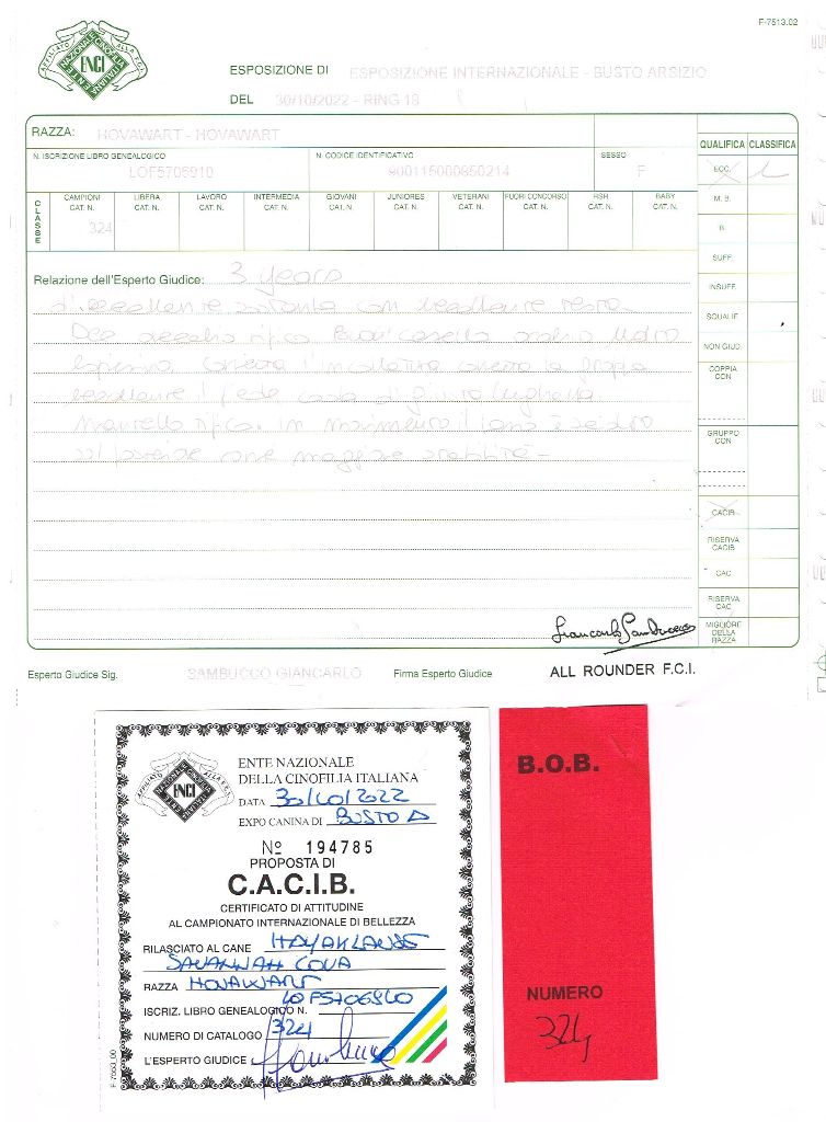 30/10/2022: Exposition Internationale de Busto Arsizio, Italie: Ch, Exc 1, CACIB, BOB, juge Gianfranco Sambucco