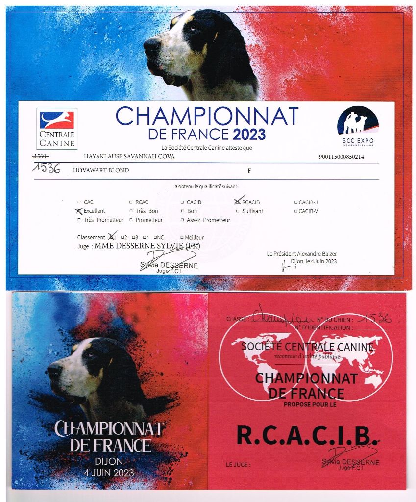 04/06/2023: Championnat de France, Dijon Chateau Brognon: Hanna se classe Exc1, et obtient le RCACIB, juge Sylvie Desserne,